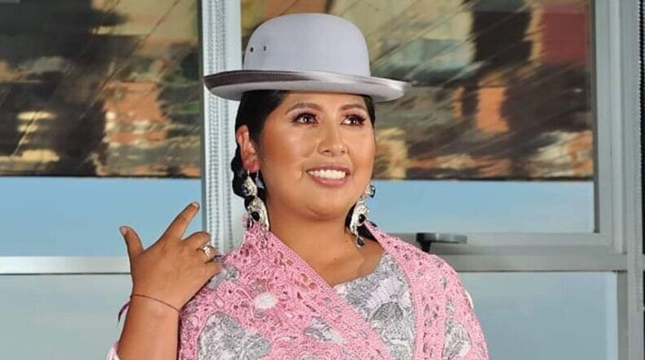 La alcaldesa sorprendió a los invitados vistiéndose de la vestimenta tradicional andina de la chola paceña, vestida con todo el atuendo de la mujer de pollera.