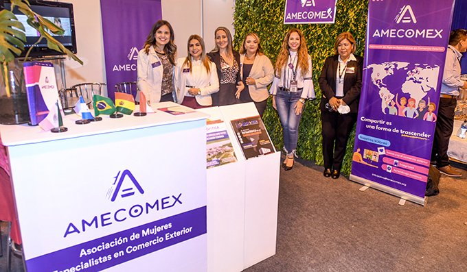 Por primera vez, un grupo de expertas de la Asociación de Mujeres Especialistas en Comercio Exterior (Amecomex) participaron del evento. Moira Peña, que dirige la institución afirma que buscan acercarse a pequeñas y medianas empresas para brindar un asesoramiento técnico, referido a la apertura de mercados, promoción de comercio justo, proyectos de impacto social y el mejoramiento de las cadenas logísticas de emprendedores.