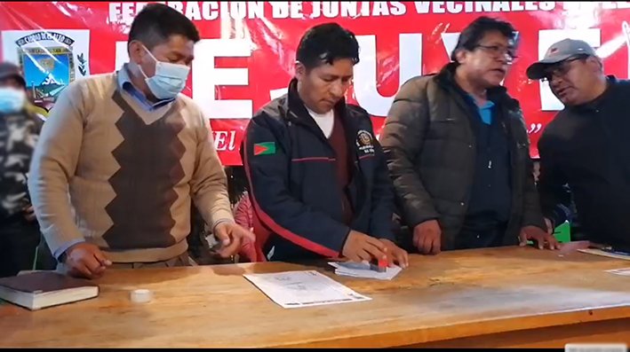 El ejecutivo del tribunal de honor de la FEJUVE a fin al MAS en la ciudad de El Alto, Edgar Condori, la jornada del 4 de noviembre, presentó una carta a la secretaría del ente vecinal y declaró: “mucha negligencia, mucha incapacidad hemos visto en esta institución (…) a partir de este momento se declara que el señor Daniel Tenorio Beltran ya no es presidente de esta institución…”. Además, instó a que los ejecutivos cumplan la orden de convocar a una reunión para elegir a un nuevo presidente. Vea el video aquí.