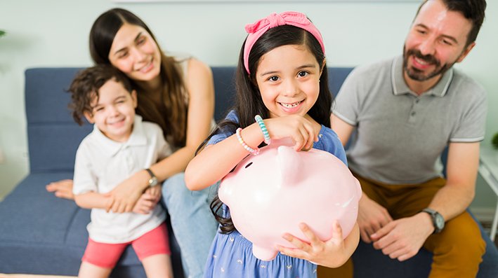 Para comenzar, los padres pueden comprar cuatro alcancías de similar tamaño y definir con sus hijos el porcentaje que le destinarán a cada uno, cómo irán generando ingresos y cuando decidirán sacar el dinero para disponerlo. Si bien, los porcentajes pueden ser flexibles, Aguilera recomienda al menos la siguiente distribución: