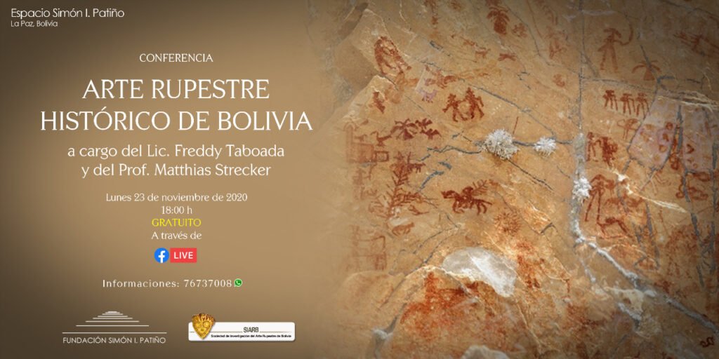 Freddy Taboada y Matthías Strecker dictarán la conferencia «Arte rupestre histórico de Bolivia», organizada por el Espacio Simón I. Patiño, el lunes 23 de noviembre, a las 18:00. La actividad se realizará a través de la plataforma de Facebook.