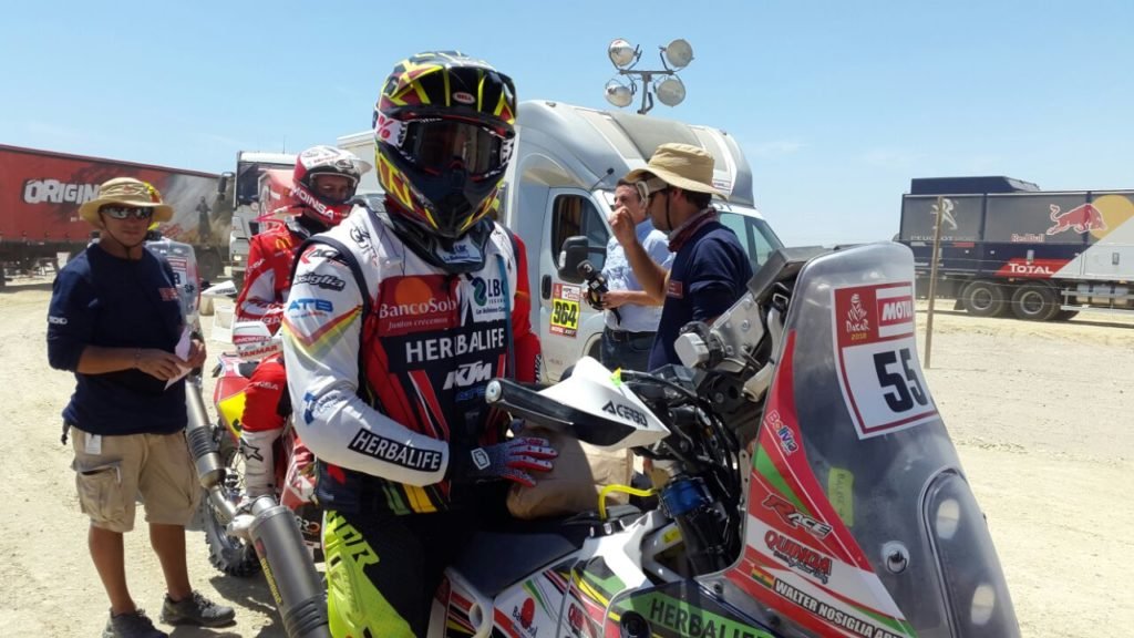 «Waltico», como es llamado por Wálter Nosiglia (padre) competidor en cuadriciclos, hacía una buena carrera en las primeras etapas. El lunes alcanzó el décimo lugar, fue la mejor jornada para el motociclista boliviano.