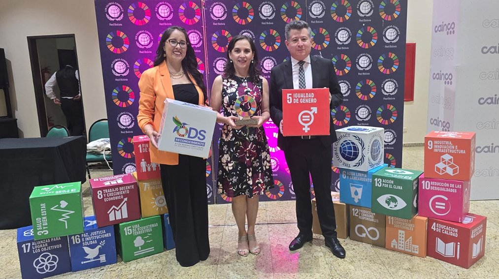 La Paz, diciembre de 2025. El Pacto Global de las Naciones Unidas – Red Bolivia, con el apoyo del Sistema de Naciones Unidas y CAINCO reconocieron al Banco Ecofuturo S.A. por sus Buenas Prácticas de Desarrollo Sostenible 2025 que postuló el Sello de Igualdad de Género de IBNORCA, práctica que fortalece su reputación y compromiso de la entidad con el Objetivo de Desarrollo Sostenible (ODS) 5.