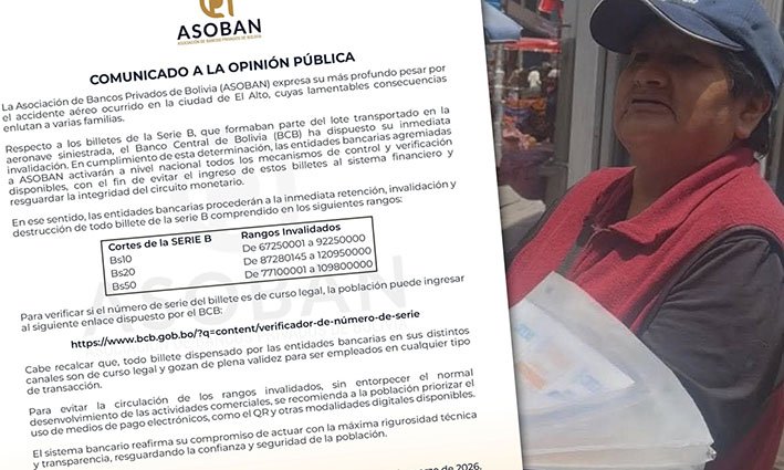 El Ministerio de Economía determinó suspender por 48 horas la validez legal de los billetes de 10, 20 y 50 bolivianos de la Serie B.