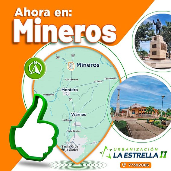 Luego de dos proyectos exitosos el Grupo Inmobiliario Santaluz S.R.L. presentó oficialmente “La Estrella II” ubicada estratégicamente sobre la carretera Montero – Minero con un total de 1.190 terrenos sobre calles, avenidas y carretera. Cuenta con áreas verdes y equipamiento pensado en la comodidad de las familias.