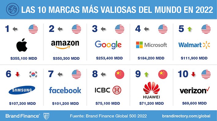 En conjunto, la industria de la tecnología se convierte de nuevo en la más valiosa, con un valor de marca acumulado cercano a los 1.3 billones de dólares en la clasificación Brand Finance Global 500. Es así como, Huawei ha conseguido recuperar su lugar entre las 10 primeras marcas, a pesar de que su negocio de teléfonos inteligentes se ha visto fuertemente afectado por múltiples sanciones estadounidenses.