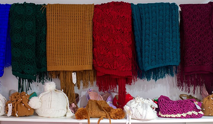 Los artículos a la venta son producto del trabajo junto a la esperanza de las mujeres privadas de libertad del Régimen Penitenciario y Centro de Orientación Femenina de Obrajes (COF); sus creaciones: mantas tejidas a crochet con puntos nuevos, carteras tejidas de lana de alpaca con perlas, colgadores hechos en telar, cuelleras y diversas prendas además de accesorios, algunas son expuestas de manera permanente en la boutique, otras, terminada la exposición son devueltas a la tienda de artesanías propia del recinto de Obrajes.