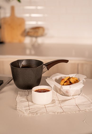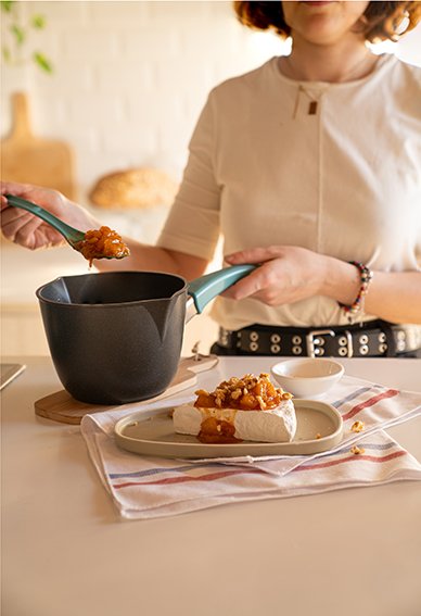 Asimismo, sobresale por su recubrimiento antiadherente de triple capa y sus picos vertedores opuestos para diestros y zurdos.