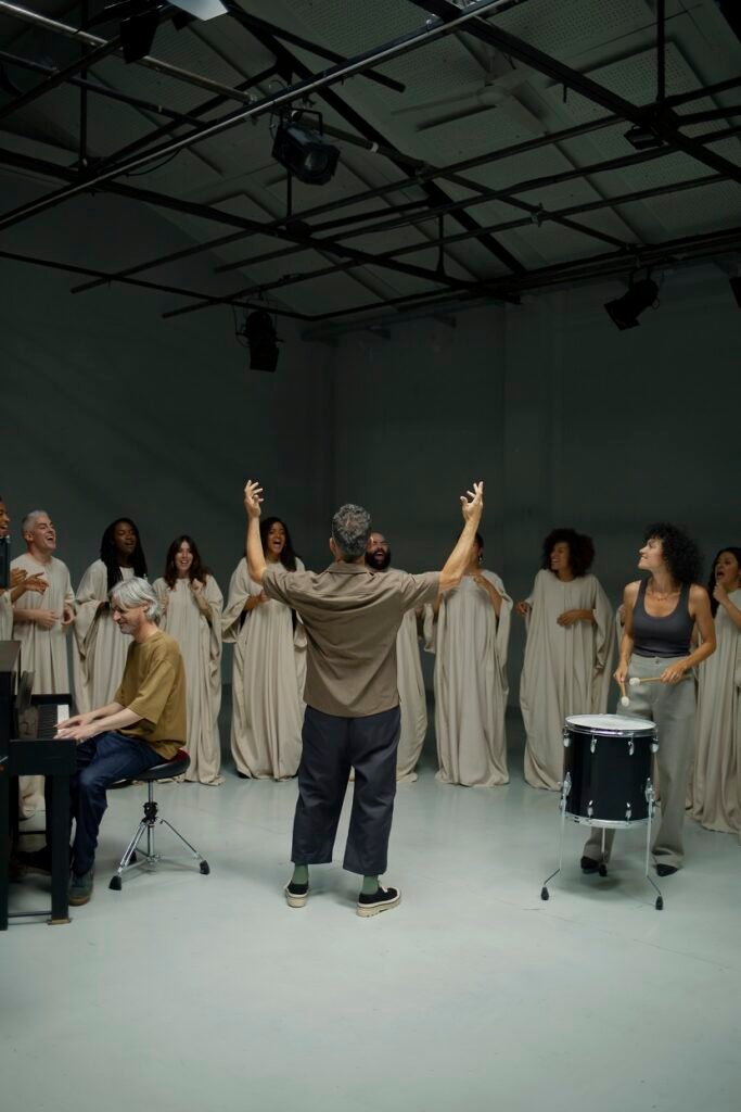 El coro es crucial en la grabación, completada con Borja Barrueta (percusión), Martin Leiton (bajo) y Juan Pietranera (piano), bajo la producción de Drexler y Carles Campi Campón. Un proceso largo de producción que contó también con la participación en sus primeras etapas de Didi Gutman, pablopablo y Vicent Huma.