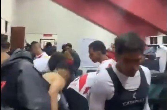 Videos en redes sociales evidenciaron la situación en el vestuario y, según reporte de medios de prensa, fueron supuestos hinchas que ingresaron al camarín y que no habrían forzado las puertas para entrar y causar destrozos.