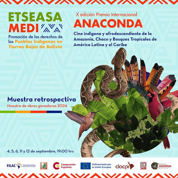 La 10a versión del Premio Internacional Anaconda de Cine Indígena y Afrodescendiente de la Amazonia, Chaco y Bosques Tropicales de América Latina y el Caribe llega a las ciudades de La Paz y Santa Cruz del 4 al 12 de septiembre, con diferentes actividades que incluyen muestras retrospectivas y de obras ganadoras de esta última versión, conversatorios e importantes encuentros de cine y audiovisual indígena.