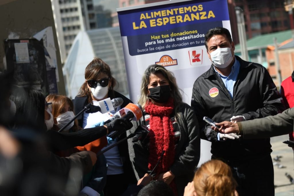 “Pedimos a toda la gente de La Paz que va a ir a un supermercado a comprar un alimento también haga una donación de ese alimento para que nosotros, en coordinación con esas instituciones, podamos hacer llegar a esas personas que están muy necesitadas y que no reciben sueldo, ni rentas, ni ningún otro beneficio”, afirmó el Alcalde Luis Revilla durante la presentación de la actividad realizada en la plaza Camacho.