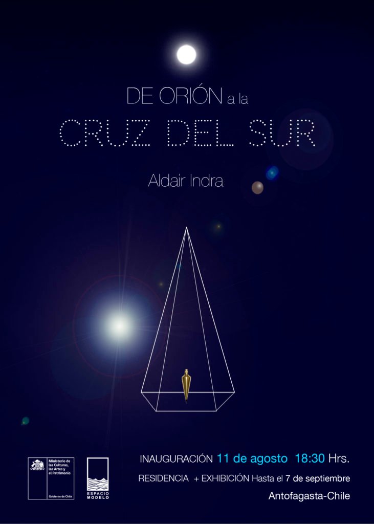 La artista boliviana Aldair Indra presenta la exposición titulada «De Orión a la Cruz del Sur», en el Espacio Modelo, en Antofagasta (Chile), del 11 de agosto al 7 de septiembre.
