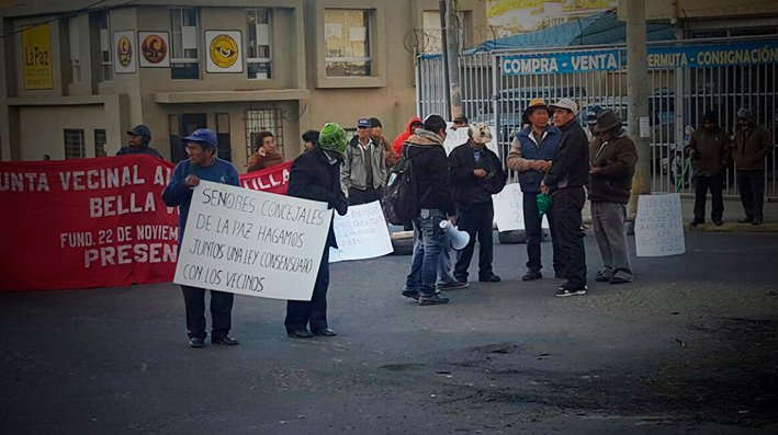 La Federación de Juntas Vecinales (Fejuve) de la ciudad de La Paz, dirigida por Jesús Vera, había anunciado un bloqueo de 48 horas los días lunes 12 y martes 13 de junio, por la exigencia de la anulación a la ley municipal de fiscalización territorial 233.