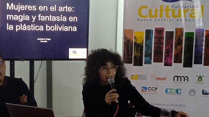 La Paz, 9 de agosto de 2023. En el marco de la 27va versión de la Feria Internacional del Libro (FIL) que este momento se realiza en la ciudad de La Paz, el Museo Nacional de Arte (MNA) organizó la charla «Mujeres en el arte: magia y fantasía en la plástica boliviana», una antesala de las muchas actividades que comprometerá la muestra permanente de obras de colección “Mujeres creadoras en Bolivia”, que se prevé inaugurar en octubre.