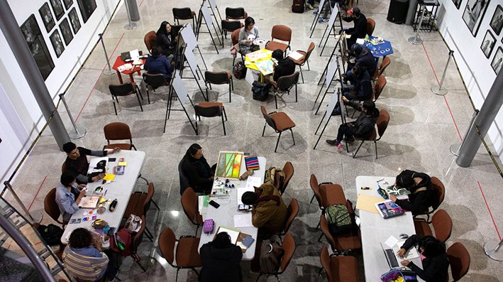 La Paz, 30 de junio de 2023. «Son chicos con notorio interés en conceptualizar su trabajo. Muchos están en la búsqueda de la destreza técnica, pero se han dado cuenta que ello debe ir ligado a un buen concepto, una buena idea y buen lenguaje”, exclamó el artista Cristian Laime, tras culminar el taller teórico práctico que dictó en el Museo Nacional de Arte (MNA), dependiente de la Fundación Cultural del Banco Central de Bolivia (FCBCB).