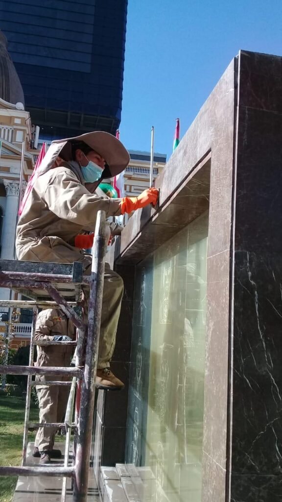 Como parte de las intervenciones que la Escuela Taller de Restauración La Paz realiza cada gestión, los estudiantes de esa instancia desarrollaron trabajos de limpieza en 15 esculturas de la plaza Murillo, que se unen a las acciones por las Fiestas Julias. Las labores continuarán el martes 6 de julio, con la estatua de Cristóbal Colón, a la que se hará una restauración curativa.