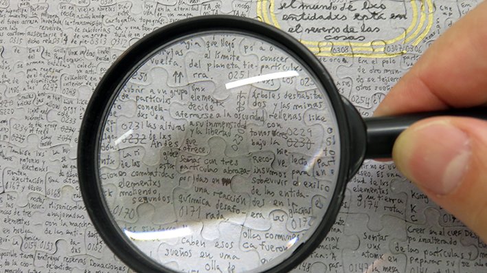 Magna Carta Mundi Entitaria es una mirada mezclada y fragmentada sobre la inmensidad desarmada en la que diferentes “piezas” minúsculas invitan al público a adentrarse, a descubrir, sin intenciones de dominación, las diferentes señales, textos e imágenes que habitan este mundo al revés.