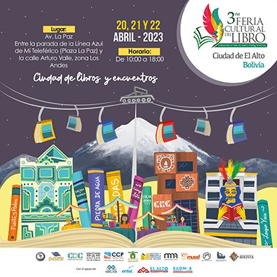 La Fundación Cultural del Banco Central de Bolivia (FCBCB) junto a sus Repositorios Nacionales y Centros Culturales alistan la tercera versión de la Feria Cultural del Libro en la ciudad de El Alto que se celebrará del 21 al 23 de abril en la zona Los Andes, Distrito 6, entre Plaza La Paz y la calle Arturo Valle. En el evento se tiene previsto alrededor de 67 actividades en las que asistirán más de 63 participantes.