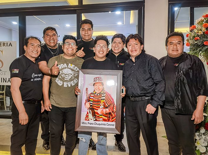 Los invitados disfrutaron de la música de Jach’a Mallku «El Legado». Los integrantes rindieron homenaje al maestro Franz Chuquimia que fue amigo e impulsor del emprendimiento de la familia Serrano.