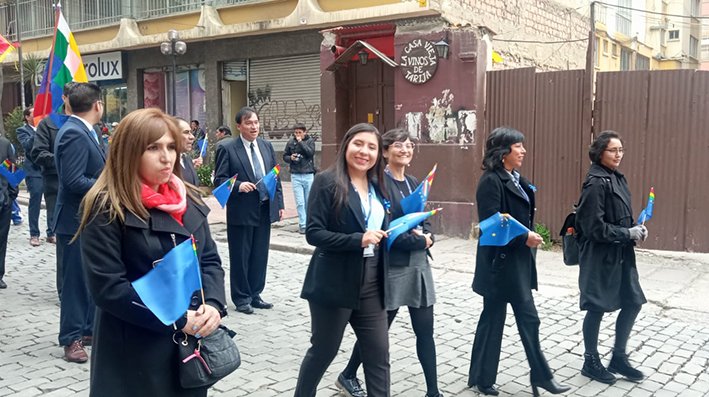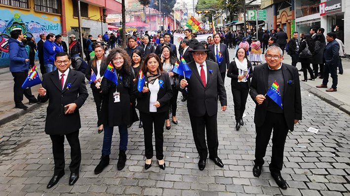 Los actos iniciaron a tempranas horas de la mañana desde las calles y avenidas adyacentes a la plaza que lleva el nombre del prócer Eduardo Abaroa, el héroe más reconocido de la defensa de Calama (1879) donde muere en manos del ejército chileno.