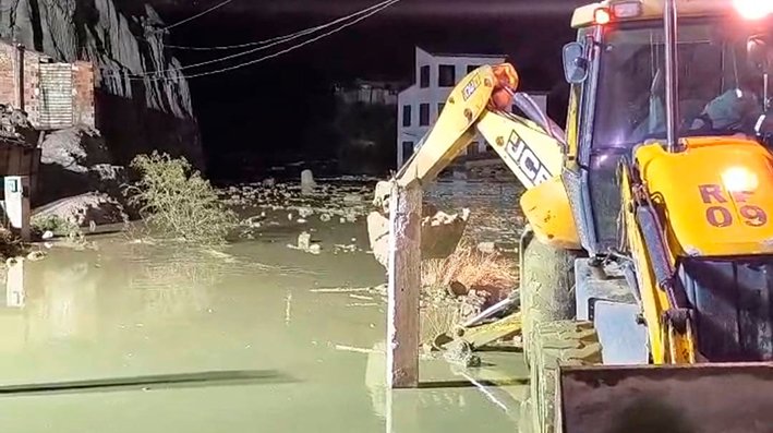 Se movilizó a maquinaria pesada para remover el fango, así también a bomberos para el rescate.