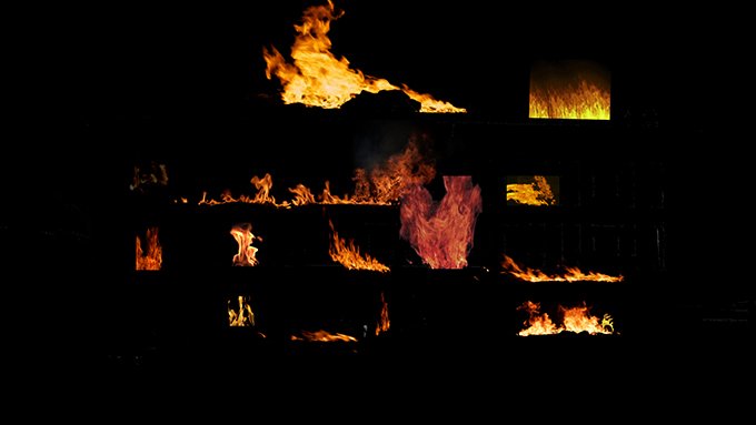 El video se basa en una captura de GoogleMaps, como un retrato estático del Km. 0 tomado a través del mecanismo de control digital. Las llamas que aluden a los focos de calor, van tomando el Palacio lentamente sin hacerle mella, tomando cada uno de los niveles, al final nos deja un paisaje oscuro apropiándose del área visible, ante el mutismo inmóvil del observador.