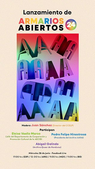 El lanzamiento de la programación de Armarios Abiertos 2024 tendrá lugar el 26 de junio a las 17:00 hora española, en una retransmisión en directo, a través de las redes sociales de la Red CCE, en la que se anunciarán los eventos programados para este 2024.