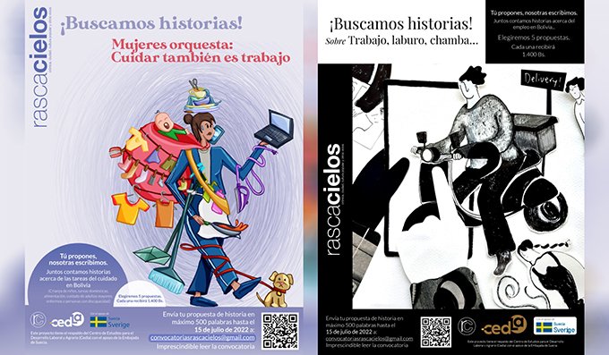 La Paz, junio de 2022. “La Revista Rascacielos te convoca a proponer una historia real –propia o de alguien conocido– que refleje tu/su experiencia laboral. Dicha historia será la base para que nosotras escribamos una crónica acerca del empleo en el país actualmente”. Así se presentan las convocatorias públicas que lanzaron el CEDLA y Rascacielos, de manera conjunta, en una innovadora alianza que une la crónica periodística y el necesario análisis sobre el empleo que ambas entidades plantean desarrollar y divulgar durante las siguientes semanas.