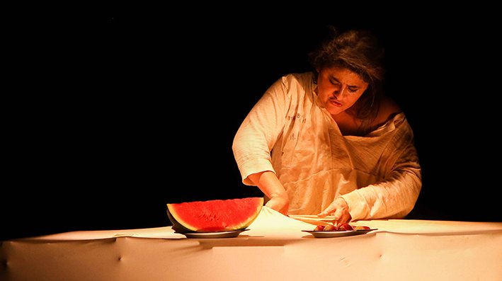Bolivia es planteada como un país que vive en una constante paradoja, siempre el querer surgir, lo cual responde a un colonialismo y patriarcado interno. Ahí surge la pregunta ¿Cómo podemos “comer” diariamente a una sociedad boliviana paradójica, colonial y patriarcal? Antígona actuará a través de la palabra de la familia accidentada que tuvo, y desde la misma palabra, ella defenderá su acto.