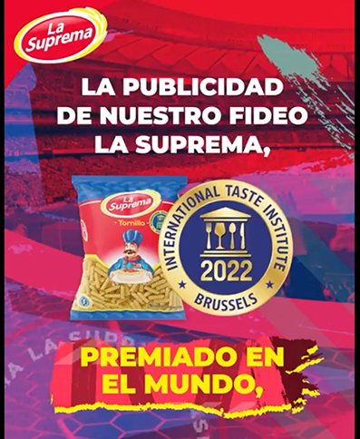 “La Suprema festeja su premio internacional presente en el partido del campeón de Europa, Real Madrid, y en partidos de futbol de la liga española. Tendremos espacios en las pantallas del campo de juego con nuestra marca de fideos y el premio del International Taste Institute en el partido del campeón europeo y en otro del Atlético de Madrid”, indicó el gerente general de La Suprema, Juan Trigo.
