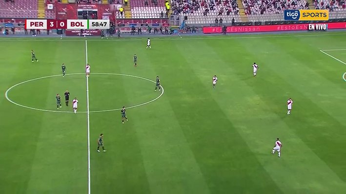 El juego desorganizado y la falta de asociaciones entre jugadores para tocar el balón, se hacia cada vez más evidente en los primeros minutos del partido, además de una fragilidad en defensa por la banda derecha. El conjunto peruano, que mostró ser superior al equipo boliviano, tuvo un gol anulado revisado por el VAR, en el que Lapadula se encontraba en posición adelantada.