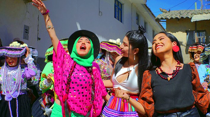 Renata Flores y Naysha, invitadas a la canción, cantan sus partes en lenguaje quechua y asháninka respectivamente, de modo que el mensaje llegue a más personas en Perú.