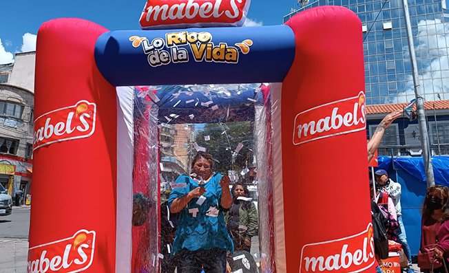 La Paz, febrero 10 de 2023. El pasado viernes, en el centro de la ciudad de La Paz, Mabel’s puso en marcha la ruta de la Cabina Ganadora “Atrapa y Gana” y decenas de consumidores vivieron la experiencia de ganar premios al instante. La actividad llegará además a los lugares más populares de La Paz y El Alto, como la calle Garcilazo, la plaza San Francisco, la avenida Tiahuanacu, la Feria 16 de julio y los más concurridos supermercados de la zona sur.