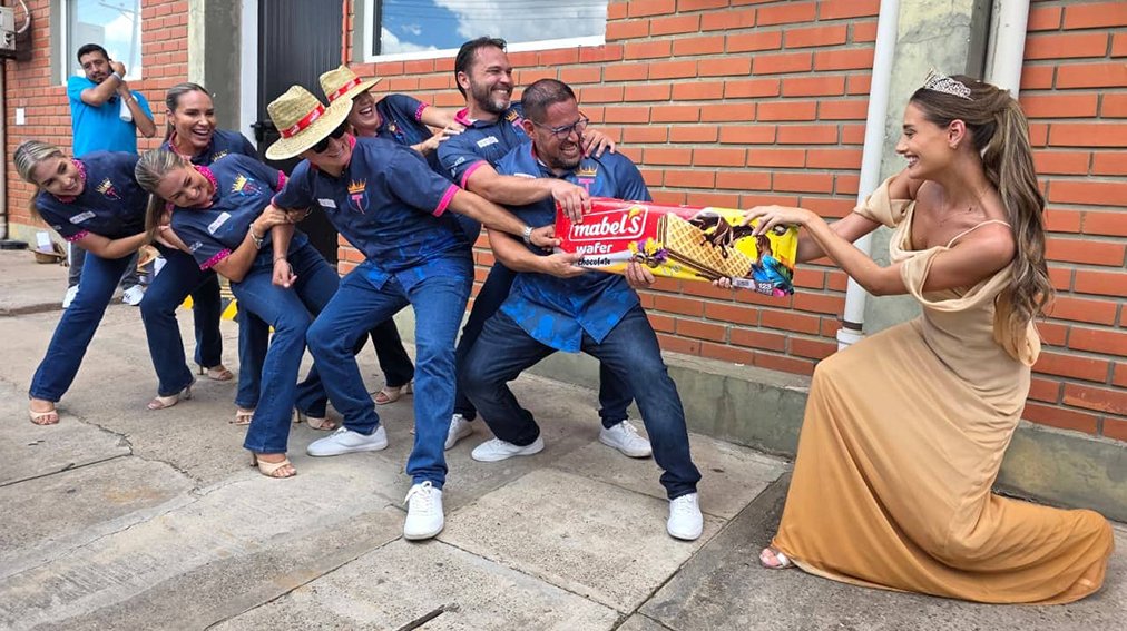 Contagiados con el espíritu alegre del carnaval, Mabel’s inició la celebración presentando el empaque de edición limitada de “Wafer Chocolate” junto a la comparsa coronadora del Carnaval Cruceño 2026, Los Testarudos, y la soberana de la Fiesta Grande de los Cruceños, Camila I.