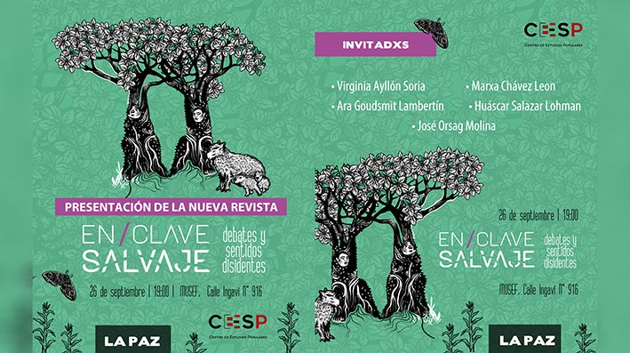 La presentación oficial de la revista “en/clave salvaje” se realizará con un evento público en la ciudad de La Paz, donde se compartirá el contenido de este primer número y se abrirá un espacio para el debate con algunas de las autoras y autores, como Virginia Ayllón, Marxa Chávez, Ara Goudsmit, José Orsag y Huáscar Salazar.