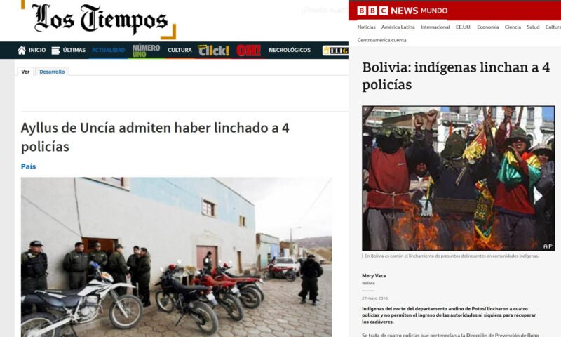 “Indígenas del norte de Potosí linchan a cuatro policías y no permiten el ingreso de autoridades para recuperar los cadáveres”