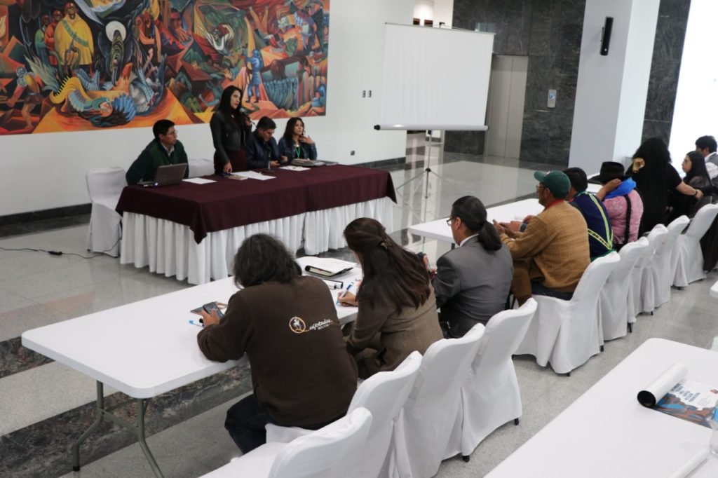 La ministra de Culturas y Turismo, Wilma Alanoca, junto a su equipo jurídico y el Comité Nacional Ejecutivo de Artistas, revisaron la estructura y contenidos principales para ultimar detalles de la propuesta del Anteproyecto de Ley del Artista en una reunión técnica ampliada que se realizó el miércoles 19 de septiembre, en el Casa Grande del Pueblo.