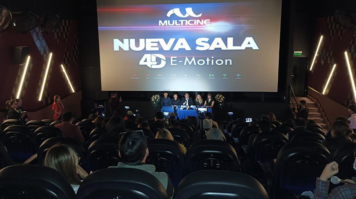 Bolivia, mayo, 2023. Con una gran estrategia comunicacional y con un slogan atractivo y sensorial, Multicine presentó la primera sala 4D E-MOTION de Bolivia, que brinda a los fanáticos del séptimo arte una experiencia que incluye aromas, vibraciones, agua, viento, burbujas y mucho más, traspasando el sonido y la imagen a través de esta tecnología que viene a potenciar la experiencia de ir al cine, así lo indicó Roberto Nelkenbaum, encargado de este importante proyecto que cambiará la manera de ir al cine.