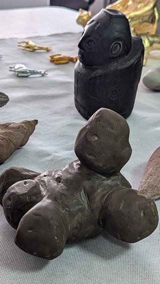 Las figuras humanas ceremoniales, utilizadas en rituales de agradecimiento y comunicación con los espíritus ancestrales, ocupan un lugar especial en la muestra. Estas estatuillas simbolizan la conexión continua entre los vivos y sus antepasados, manifestando la reverencia y el respeto que las comunidades andinas tienen por sus mayores y su sabiduría ancestral.