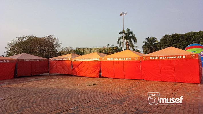 “MUSEF más cerca de ti” expone bienes culturales en dos formatos: fotografías en grandes dimensiones y reproducciones de bienes en 3D. En las carpas desplegadas en cada ocasión se llevan las muestras de las colecciones “Tejiendo la Vida” de textiles, “Moldeando la Vida” de cerámicas, “El Poder de las Plumas” de la colección de arte plumario y la colección “Máscaras”. Asimismo, se ha logrado innovar en la impresión en 3D de vasijas ceremoniales, artículos líticos y otros con los que estudiantes y visitantes de todas las edades pueden interactuar de manera activa.
