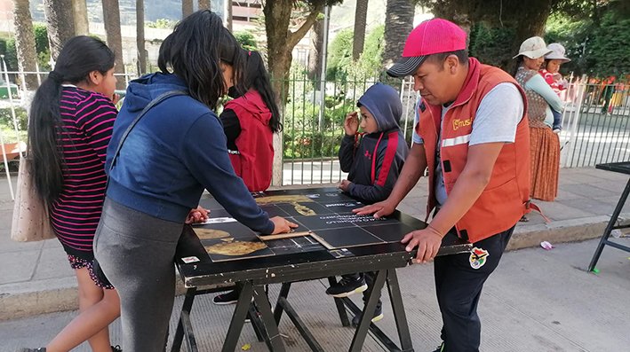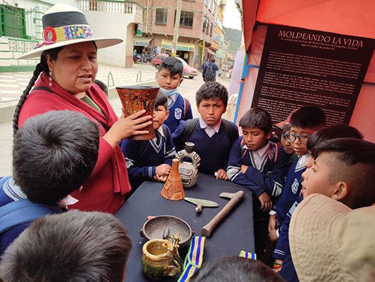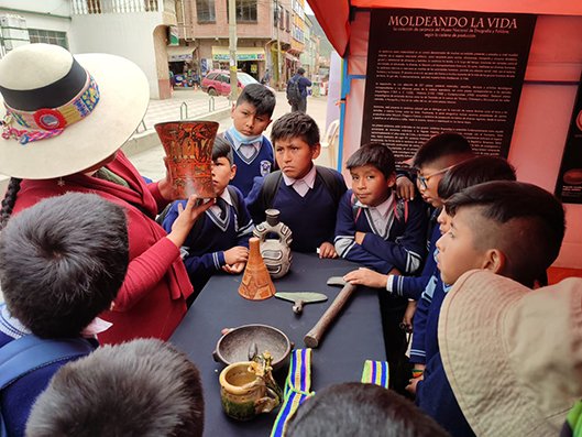 Con muestras educativas basadas en las colecciones de tejidos, máscaras, cerámicas, metales y la exposición de Crianza Mutua y Alimentación, complementada por un espacio lúdico con rompecabezas, el Musef más cerca de Ti se ha convertido en una muestra itinerante altamente demandada por los municipios de toda Bolivia.