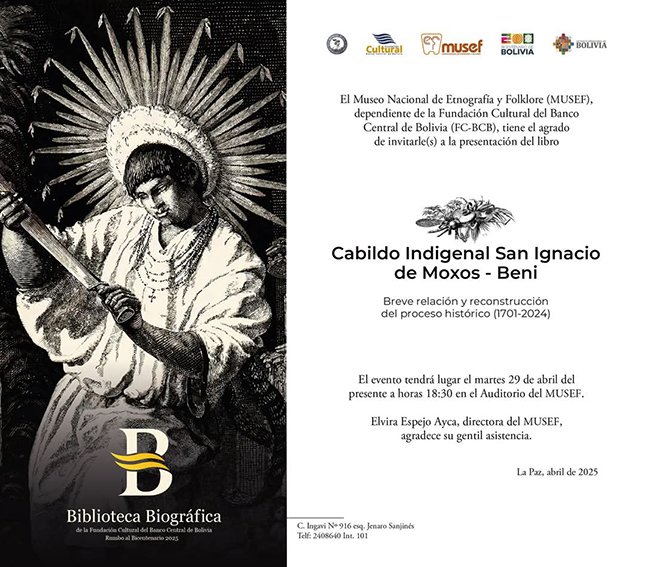 Además, este 1 de mayo se presentará este libro en San Ignacio de Moxos, con el auspicio del Cabildo Indigenal, durante la procesión y siembra de cruz misional. La presentación del libro ya está generando expectativa entre académicos, historiadores críticos, movimientos indígenas y sectores culturales. Se prevé que Cabildo Indigenal San Ignacio de Moxos – Beni se convierta en referencia obligada para quienes estudian no solo la historia de Beni, sino la historia silenciada de todo el oriente boliviano.