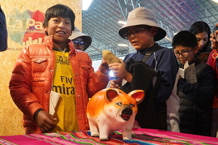 “Un comedor donde se lee, una biblioteca donde se come”, es el lema del Comedor Escolar Wisllita, cuyos estudiantes de primaria visitaron la Feria Internacional del Libro de La Paz este miércoles 7 de agosto para realizar una emotiva actividad. Niños y niñas que asisten a ese centro de apoyo socio-pedagógico se reunieron alrededor de una mesa donde pusieron la alcancía en forma de cerdito, procedieron a romperla y, bajo lista, uno por uno recibieron el dinero que ahorraron durante siete meses con el propósito de usar ese dinero para comprar libros.