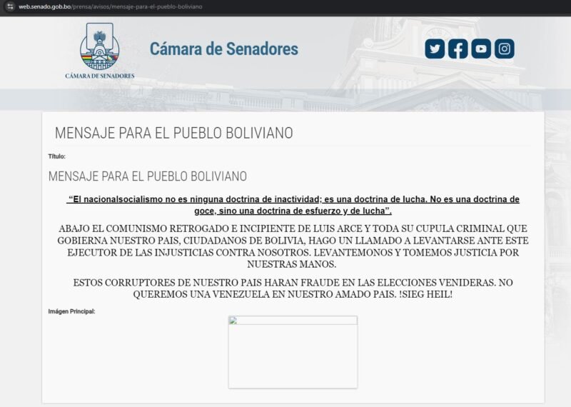 En el texto, titulado «Mensaje para el pueblo boliviano», se dirigían críticas a la gestión del presidente Luis Arce y también referencias a la situación que atraviesa Venezuela.