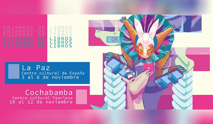 La Feria de la Edición e Impresión Independiente Enjambre de Libros retorna al país. El más importante evento de formación para editores y libreros ya tiene fecha de inicio. Será desde el jueves 3 hasta el domingo 6 de noviembre, en el Centro Cultural de España en La Paz, y en Cochabamba, del jueves 10 al sábado 12 de noviembre, en el Centro Cultural Fearless.