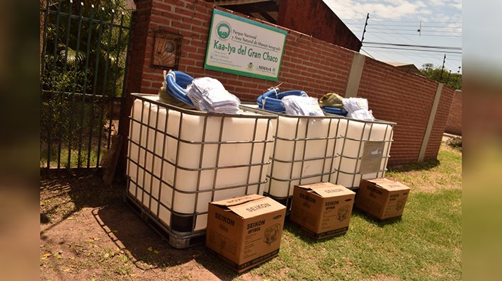 El director del Parque Nacional Kaa-Iya, Marcel Caballero, indicó que los materiales entregados serán de mucha ayuda para seguir resguardando las áreas protegidas (Chiquitanía y Chaco Boliviano) de los incendios forestales. “El fuego es la peor amenaza que tienen las áreas protegidas, ¡una amenaza latente! que se ve cada año debido al cambio climático que hace que los suelos sean más secos” dijo. En ese sentido, Froilán Peña, guardaparque del Parque Kaa-Iya agradeció al PNUD Bolivia y Fundación UNIFRANZ por la entrega de las bombas de agua e indicó que es importante estar alerta al ingreso de la temporada de sequías “las cuadrillas ya están en alerta”, enfatizó.