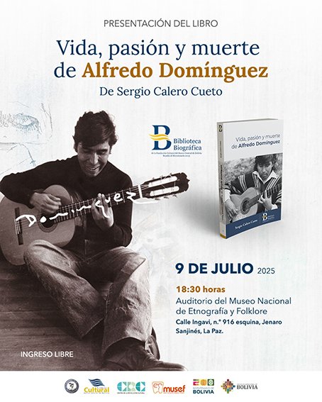 La presentación del libro se realizará el miércoles 9 de julio del 2025, a las 18:30, en el Auditorio del Museo Nacional de Etnografía y Folklore (Musef), ubicado en la calle Ingavi n.° 916, esquina Genaro Sanjinés. El público podrá ingresar de manera libre y sumergirse en la vida y obra de Alfredo Domínguez.