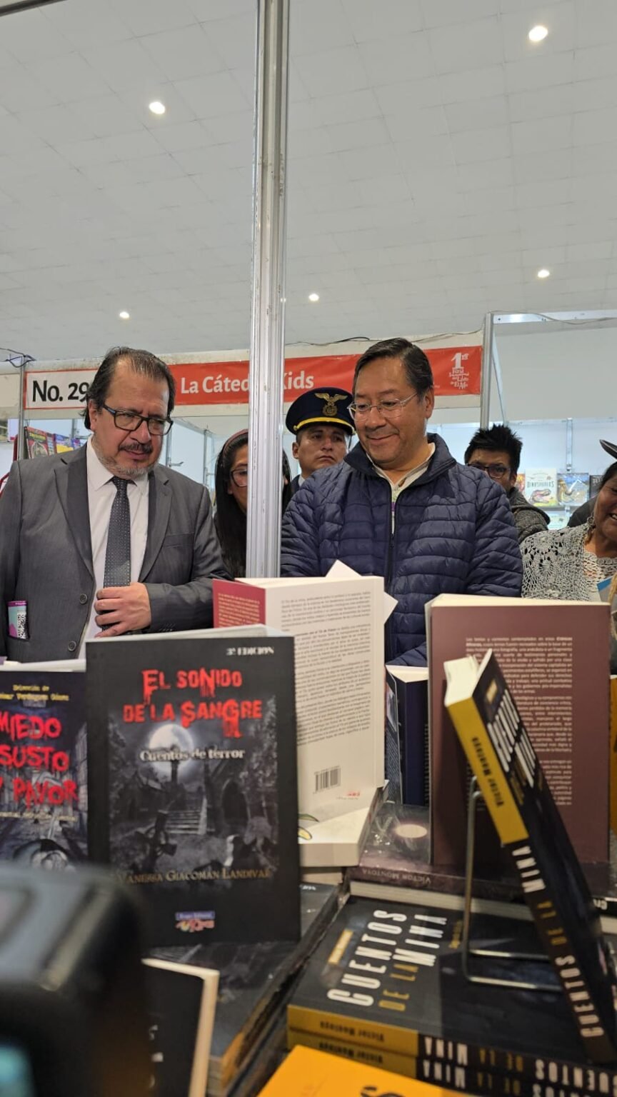 El presidente Luis Arce, la alcaldesa Eva Copa, el presidente de la Cámara Departamental del Libro de La Paz, David Pérez, y la embajadora de Francia en Bolivia, Hélène Roos, fueron los encargados de abrir la cita literaria.
