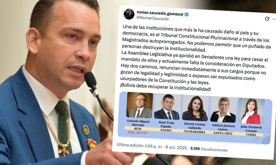 “Una de las instituciones que más daño le ha causado al país y a su democracia es el Tribunal Constitucional Plurinacional, a través de los magistrados autoprorrogados. No podemos permitir que un puñado de personas destruyan la institucionalidad”, advirtió.